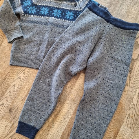 Tykt og varmt ullsett med ullgenser , kløfri, og ullbukse - sett i str. 104