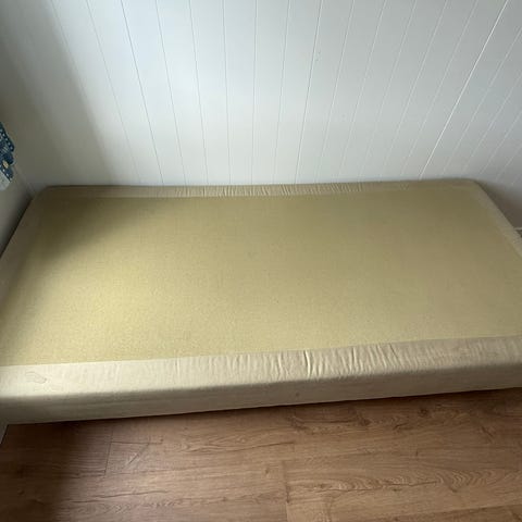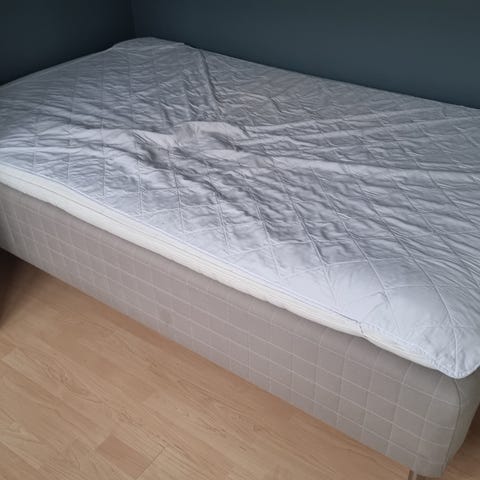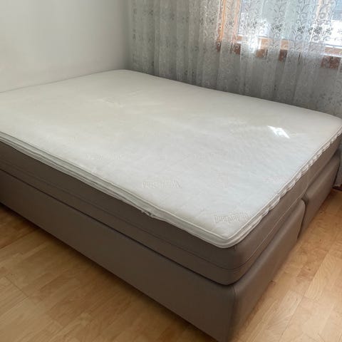 Madrassen er merke Svane Zenit. Den er hel og uten flekker. Den måler 200 x 75 cm, og har 6 cm lange bein under som kan skrus av. Den kan hentes på Torudåsen, 1821 Spydeberg.