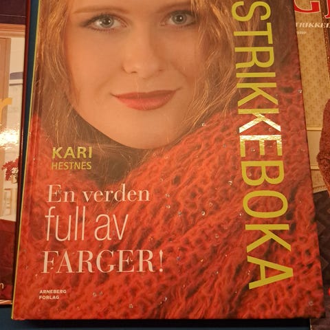 1 bokmed oppskrifter, 10 strikkehefter og en enkeltoppskrift selges samlet.