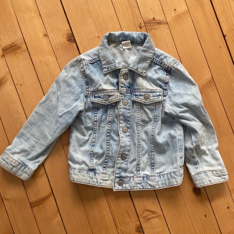 Lindex Denimjakke for barn i størrelse 128. Jakken er blå og designet for jenter. Laget av denimmateriale med knappelukking foran og to brystlommer med klaff og knapp.