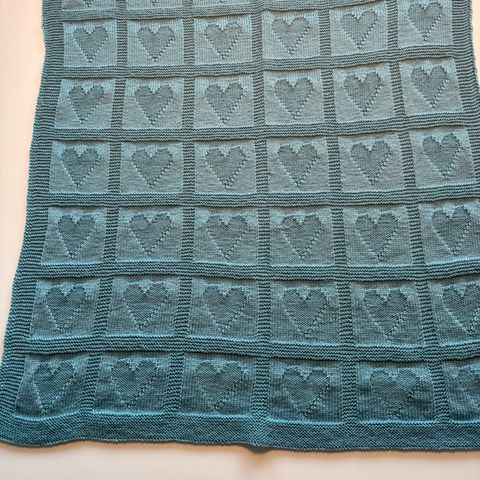 Lyseblått babyteppe strikket i babyull fra Viking garn. Kan vaskes på 30 grader ullvugge program, tørkes flatt. Lengde ca. 76 cm og bredde ca. 67cm. Kan sendes dersom kjøper betaler porto på kr 76.