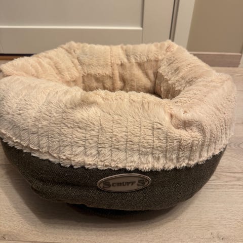Scruffs hundeseng med myk polstring i rosa og beige farger. Str. 95cm x 75cm. Passer for mellomstore hunder, og er laget med materialer som er enkle å rengjøre. Sangen er nylig vasket på 60 grader😊. Scruffs Ellen Hundemadrass har en superkoselig overflate med teksturert fuskepels på liggedelen, mens ytterkanter og underside er laget av et pent tweedlignende stoff med Scruffs logo. Antiskli materiale under. Til referanse er det en finsk lapphund på siste bilde☺️. Tror ikke det går an å få tak i denne i rosa lenger.