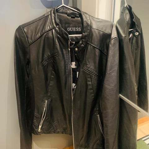 GUESS Annet yttertøy i størrelse XL for kvinner. Jakken er svart og har en pelskrage. Passer som yttertøy for kaldere vær.