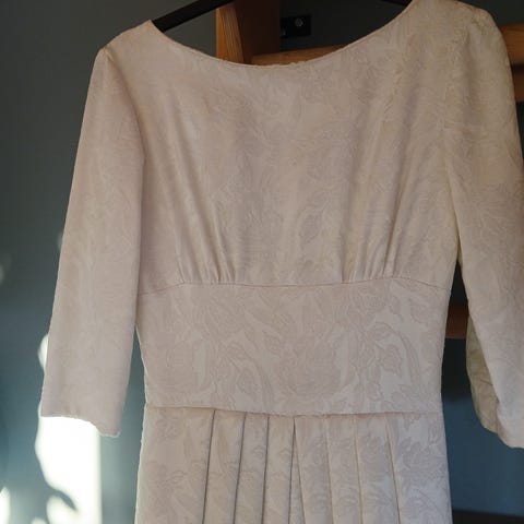 Vintage sommerkjole fkjøpt i Hellas på 70-tallet. Nydelig hvit bomull og blå broderier. Pent brukt og uten merker. Underkjole følger ikke med.