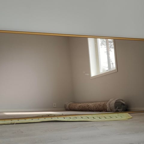 Ett av dørene er med stort speil og det er i Eik design (mulig heltre).