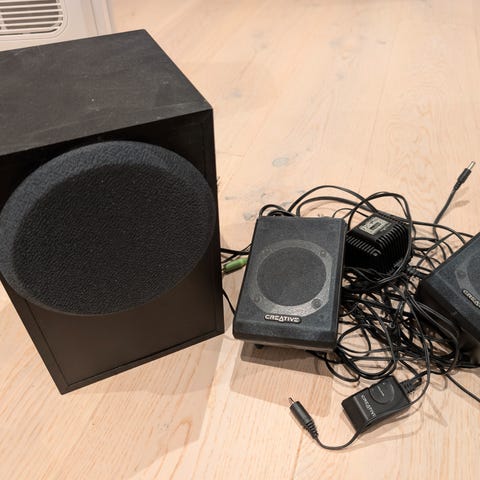 Solide bokhyllehøyttalere med god lyd. Det er litt skraper i lakken, men dette synes ikke på avstand. Kan kobles til på flere måter (se bilde av baksiden).