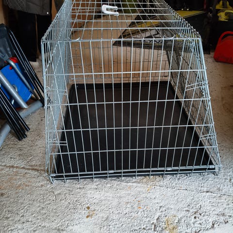 Sølvfarget hundebur selges. Mål er: