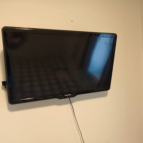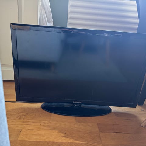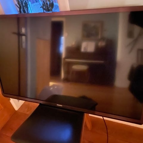Stativet er ikke originalt, så TV-en vingler, den må helst lenes mot veggen.