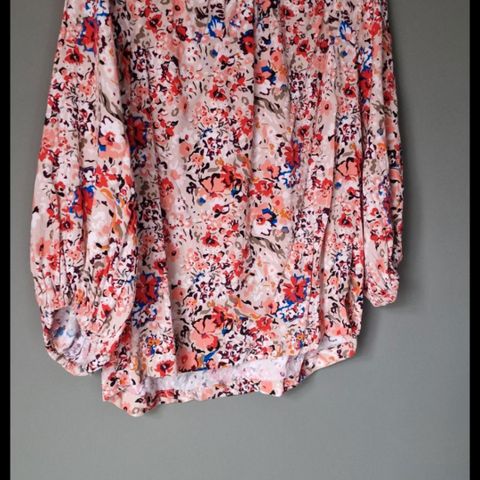 Selger denne superkule blusen kjøpt i bruktbutikk da jeg dessverre ikke får brukt den. Den er i et silkeaktig polyester stoff med litt elastan og er myk og glatt i stoffet. Å så har den skulderputer.
