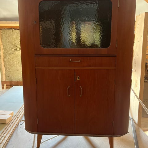 Hjørnebarskap i teak – laget i Danmark på 1950-tallet
