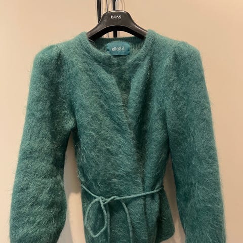 Superfiiiin Ella&Il cardigan i fargen Moss green str m. 78% mohair,26% nylon og2% nylon. Passer til ALt!