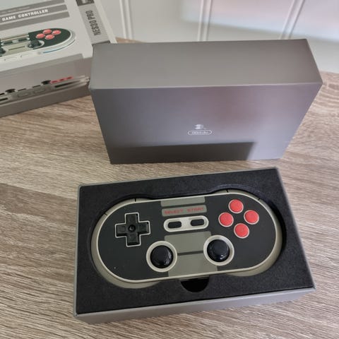 To 8bitdo NES30 selges med originalemballasje, USB-kabel, beskyttelsesdeksler og nøkkelringer. Følger også med instruksjoner i den ene eska, men det er nok bedre å finne en oppdatert PDF på nettsiden til produsenten. De er pent brukt, nesten som nye. Selges kun samlet.