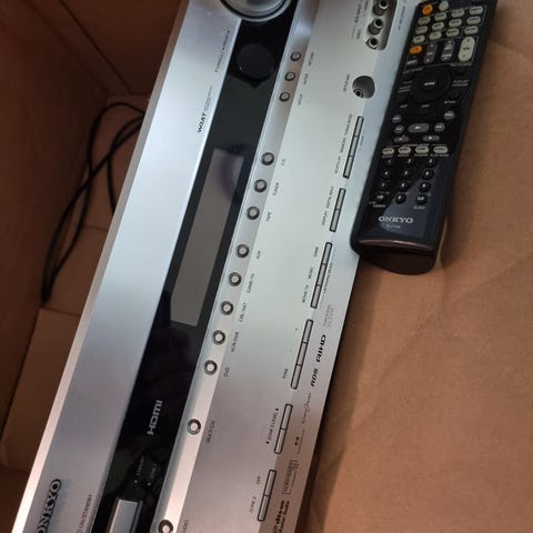 Onkyo TX-DS595, ukjent stand, var i bruk for et par år siden. Mangler knapp for av/på