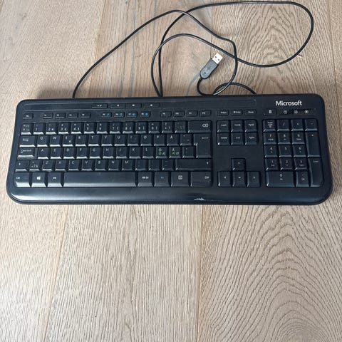 Selger et pålitelig og solid kablet tastatur fra Microsoft. Dette er en utmerket løsning for deg som ønsker et enkelt, funksjonelt tastatur uten behov for batterier eller trådløs tilkobling.