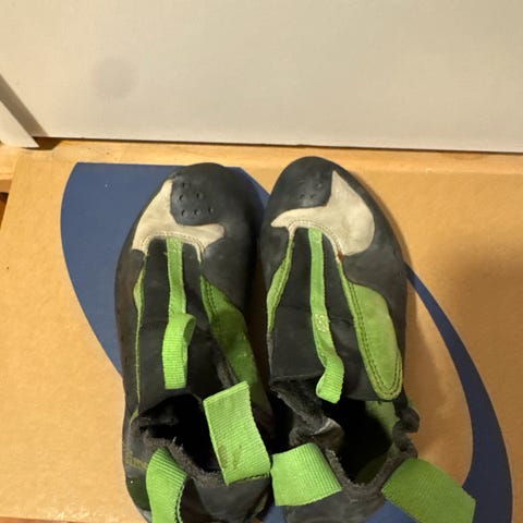 Black Diamond Momentum er en klatresko i grå og svart farge, størrelse 45. Skoen har borrelås for enkel justering og en komfortabel passform. Materialet er pustende og slitesterkt, designet for klatring og buldring. Skoen er brukt to ganger. Selges fordi den er for liten for meg.