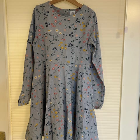 Polarn O. Pyret blondekjole i 100% bomull, størrelse 8-10 år. Kjolen har korte ermer og et mønster med broderte detaljer i stoffet. Egnet som hverdags- eller festantrekk.