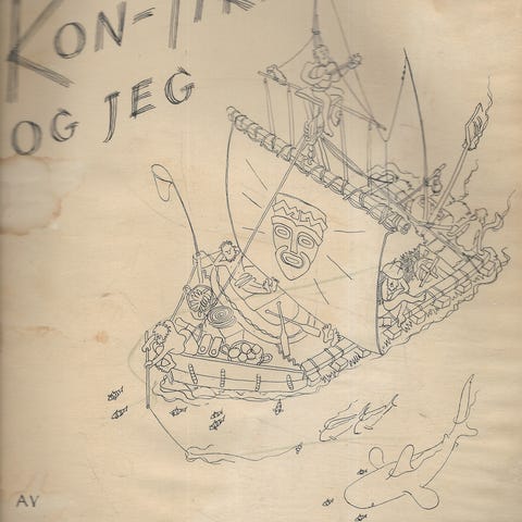 Erik Hesselberg Kon-Tiki og Jeg Bok Illustrert Skissebok