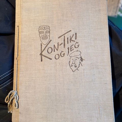 Erik Hesselberg Kon-Tiki og Jeg. bok med illustrasjoner og skisser. Inneholder håndtegnede tegninger og tekst, dokumenterer ekspedisjonen Kon-Tiki. Med skisser av mannskap og utstyr. Passer for samlere og de som er interessert i historiske ekspedisjoner.