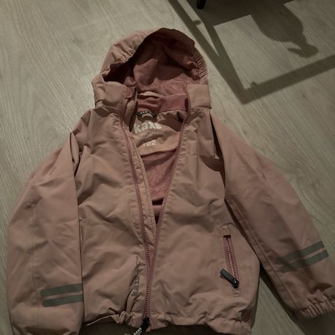 Kaxs skalljakke i lys rosa. Litt slitt oppe ved glidelås, se bilde.