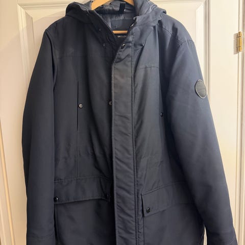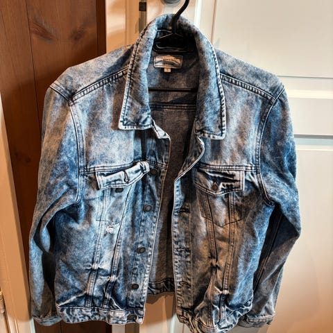 ONLY Blue Only & Sons Denimjakke i størrelse M. Jakken er blå og laget av denimmateriale. Den har knappelukking foran, to brystlommer med klaff og to sidelommer. Jakken er designet for menn og passer til utendørs bruk.