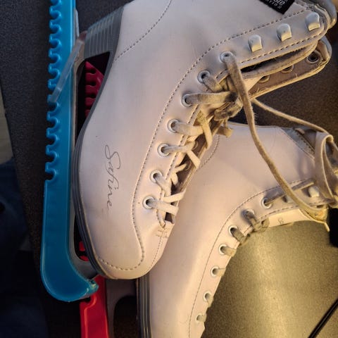 Skøyter kunstløp str 27. Små i str. Vanlige bruksmerker, litd brukt, mye bruk igjen.