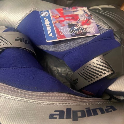 Alpina Allround Classic skistøvel i str 40. Størrelsen er liten og tilsvarer str 39 (dame). Skoene er kun brukt få ganger og fremstår som nye, men dessverre er en av helbøylene (heel grip system) brukket og derfor selges skoene til lav pris. Muligens kan den byttes ved levering til Alpina.