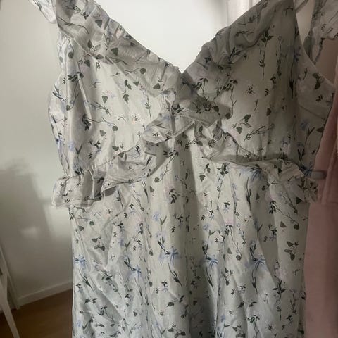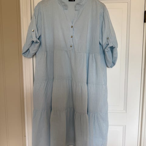 Fin kjole i grønn farge med hvite prikker. Kjolen har langermet design med volanger langs utringning og mansjetter. Elastisk midje gir tilpasset passform. Størrelse: One Size.