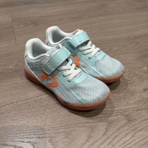 Hummel Barne Joggesko i størrelse 30, designet for unisex. Joggeskoene har en lys grønn farge med oransje detaljer og gummisåle. Materialet består av pustende mesh og syntetiske elementer, og skoene har borrelås og lisser for enkel tilpasning. Egnet for daglig bruk og aktiviteter for barn. Kun brukt i gymsal.