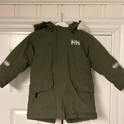 Pent brukt Helly Hansen vinterjakke, størrelse ca. 98/104. Litt usikker på størrelsen, da den ikke står i jakken. Har et lite bruksspor på høyre brystkassen.