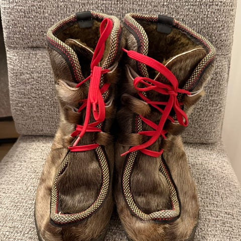 Ingen merker på utsiden, men noe slitt i hælen på innsiden
