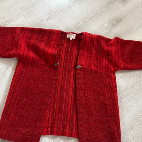 Jakken har ligget i skapet mitt i flere år. Den er aldri brukt og fremstår som ny. Ullfilt med broderte bånd. Helforet. Selges for 400kr pluss porto.
