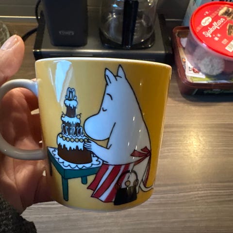 Var så uheldig å miste koppen i gulvet.