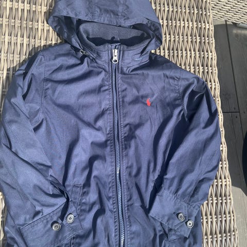 Tommy Hilfiger jakke i blå farge, størrelse 122, designet for gutter. Jakken har hette, glidelås foran og to lommer med klaff. Materialet er lett og egnet for barn.