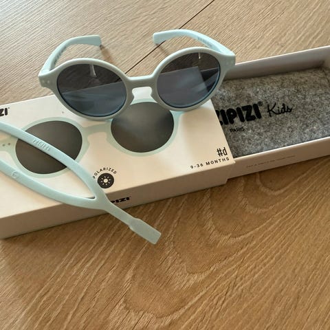 Nye - kun prøvd på Izipizi #c str 9-36 mnd farge milk med gråe polariserte glass. Kjempekule! Litt små størrelsen. Ingen skader eller merker. Følger med strikk og filtetui. Ny pris kr 419. Fargen er sluttsolgt i denne modellen.