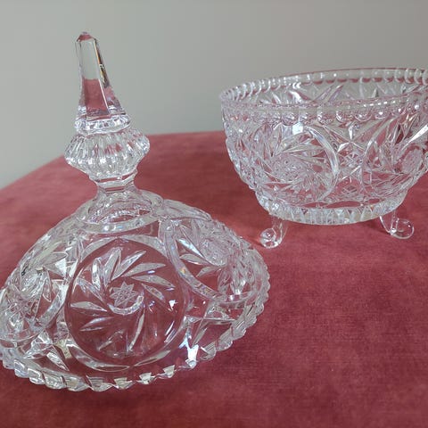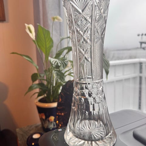 Nydelig vintage krystallbolle med klassisk håndslipt stjernemønster 🌟