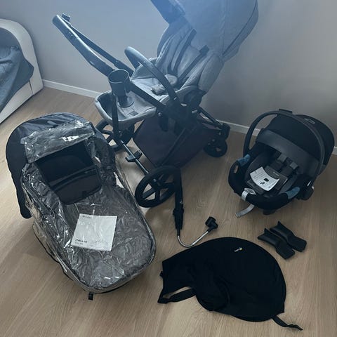 Selger cybex priam Manhattan grey med mye utstyr. Her får du to sittedeler og en kjempe romslig liggedel.