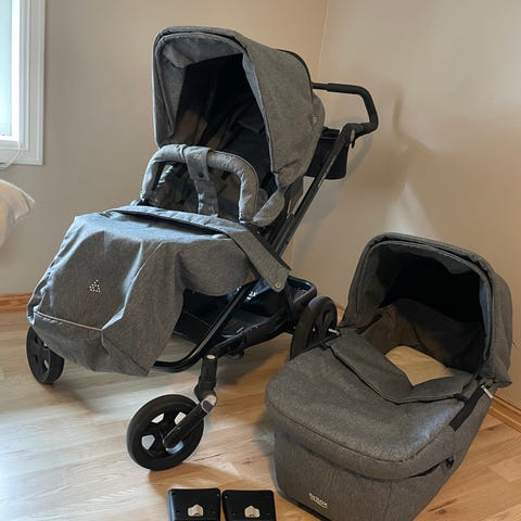 Parasoll, regntrekk, vogntrekk og myggnett følger med. Jeg finner ingen skader eller flekker. Alt er nyvasket. Vognen er oppbevart inne. Denne vognen er en av flere vogner vi har hatt. Den har vært lagret inne og er nå klar for en ny verdensborger. Ny pris var ca 15.000+ kr håper på seriøse henvendelser og setter prisen til 6000kr