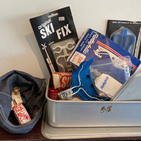 Gamle men ubrukte Rottefella ski-bindinger. Flotte retro skibindinger som fortsatt kan brukes eller kan være til dekorasjon. Disse er i «gull» farge.