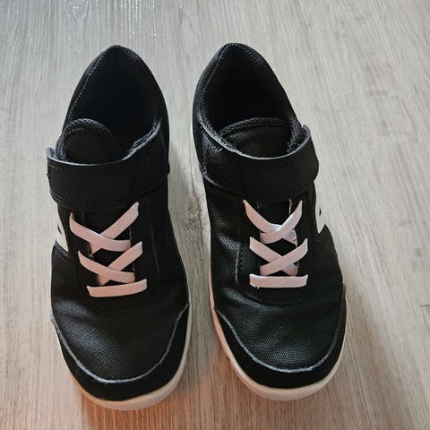 Puma barne sko i størrelse 35, unisex modell. Skoene er svarte med hvit såle og har borrelås for enkel justering. Materialet er syntetisk, egnet for barn.