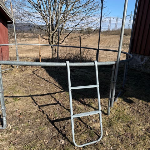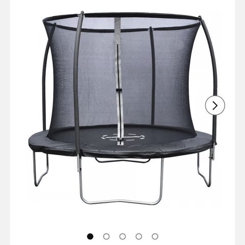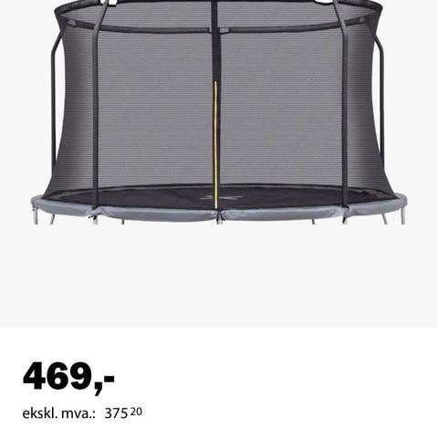 Trampolinen funker utmerket men det har blitt et hull i sikkerhetsnettet, like ved åpningen. Se bilde. Mulig det kan sys evt kjøpe nytt nett om man ønsker. Ellers i ok stand.