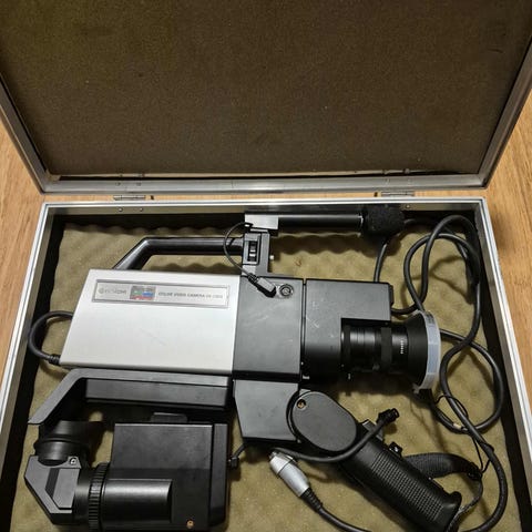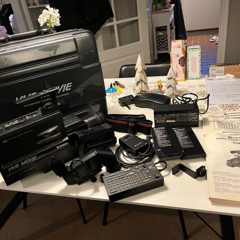 Veske, kamera, lader, kabler, discer for opptak