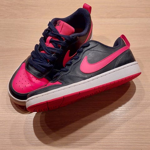 Nike halvhøy sko med borrelås str 36,5. Mørke blå med grønne detaljer. Pent brukt en halv sesong.