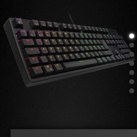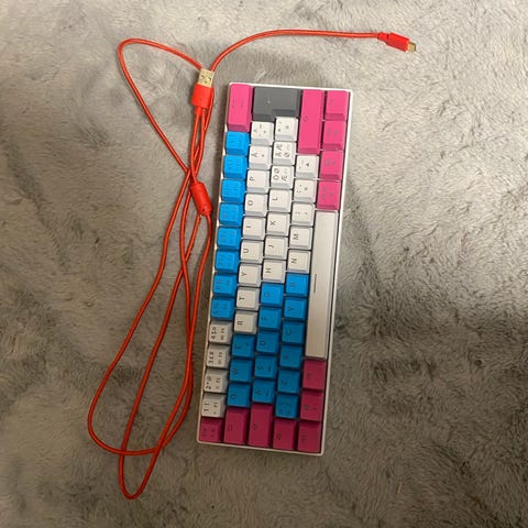 Mekanisk gaming tastatur med RGB-belysning. Kommer med en ekstra USB-kabel i spiralkabel-design. Kan også bare ha med originale hvite ledningen Tastaturet har kompakt layout og fargede taster, inkludert røde og hvite taster. Passer som tilleggsutstyr til PC.