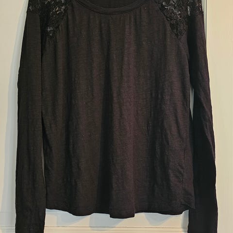 Søt genser fra Holly & Whyte/ Lindex. Strl S. Sort, med blondedetaljer i halsen/brystet.