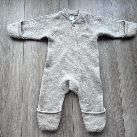 Kjøredress i myk og varm merinoull med gjennomgående glidelås fra hals til venstre fot. Ermene og bena på drakten er med oppbrett. Drakten har også et lite kronebroderi på venstre bryst.