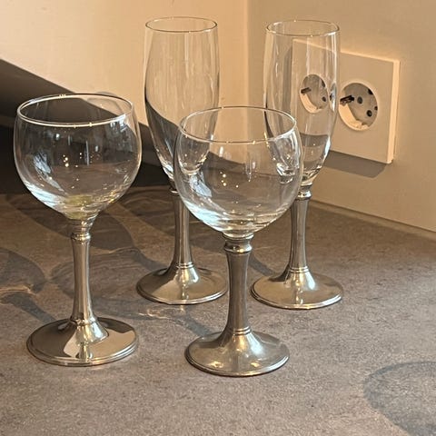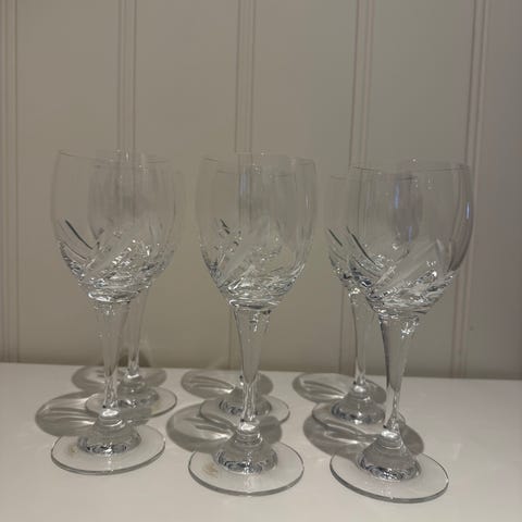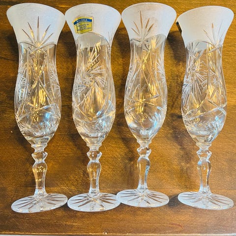 Selger 4 vintage champagneglass. De er hel ved uten riper. Glassene er i krystall. Usikker på merket da de er arvet. Selges samlet for 300,-.