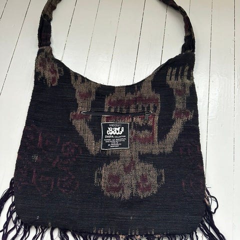 Liten sommerveske laget fra naturlig materialer og bomull foring. Det er noe brukt men i veldig god tilstand.