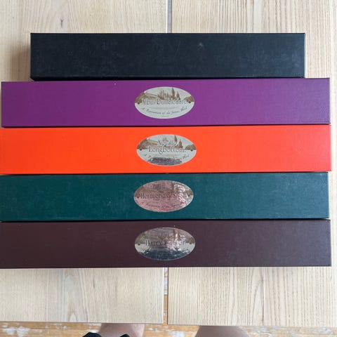 Harry Potter Hermione Light Painting Wand. Denne tryllestaven er laget i detaljert design for å etterligne Hermione Grangers stav fra Harry Potter-serien. Den kommer i en original eske med dekorative elementer og beskrivelse. Passer til samlere og fans av Harry Potter.