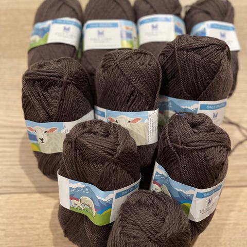 100% ren ny ull, maskinvask på 40gr. Pinnene 2,5-3. kr 25,- pr nøste, Kan sende på kjøpers regning.