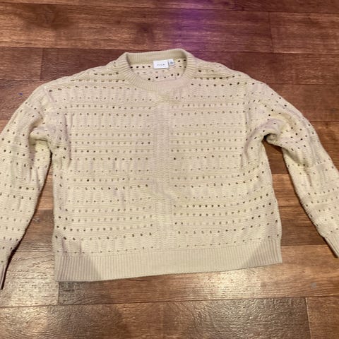 Vila Genser i beige farge, størrelse L for kvinner. Strikket genser med åpen, nettinglignende struktur. Passer til daglig bruk og lag-på-lag klær.